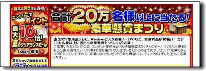 20万ポイントの山分けと抽選で5名に1万ポイントです。
